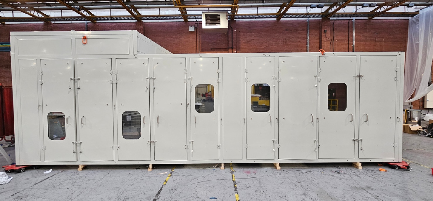 The enclosure measured approx. 4m long x 1.7m wide x 2.1m high, and was supplied as a 1-piece drop-over unit, complete with certified lifting lugs.
