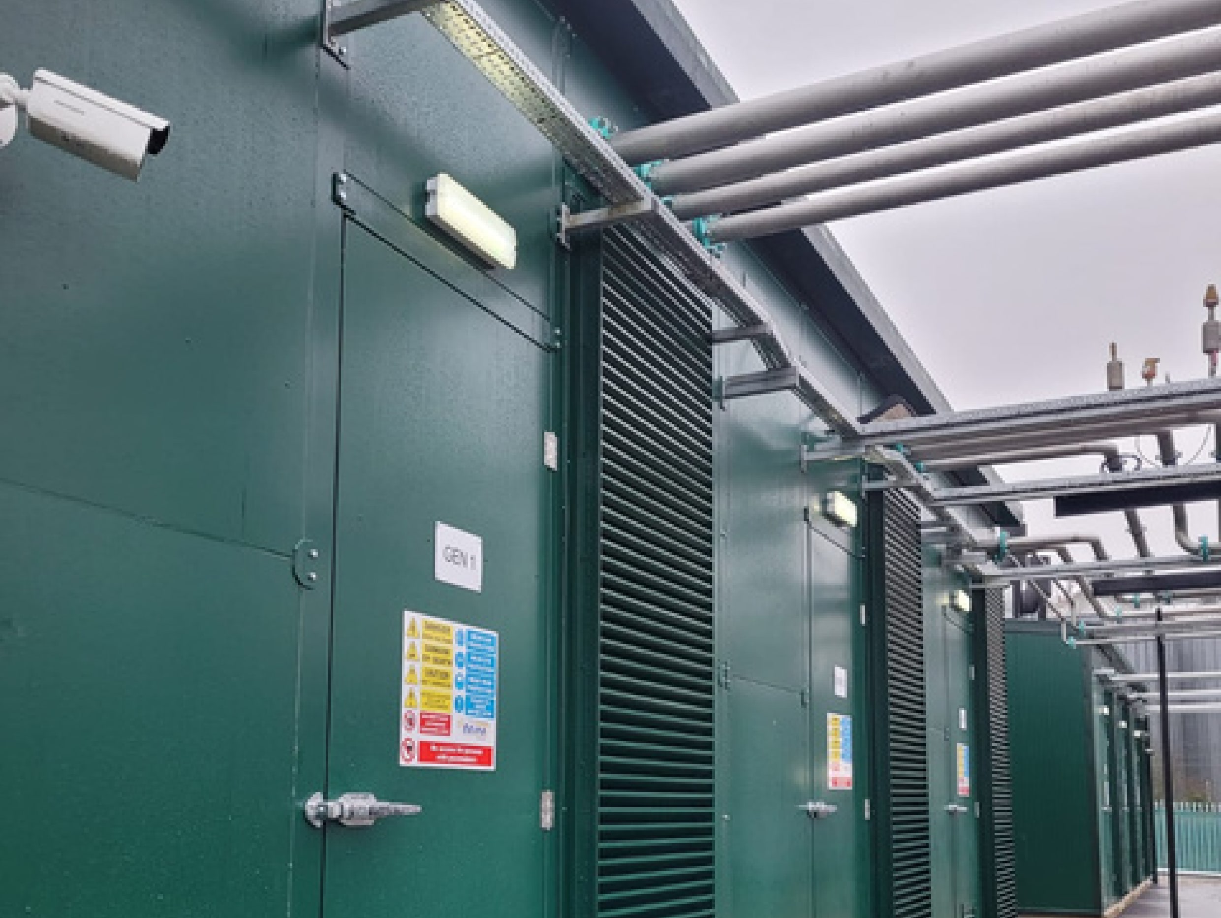 A large acoustic enclosure, complete with 6 individual engine bays and central switchgear room: