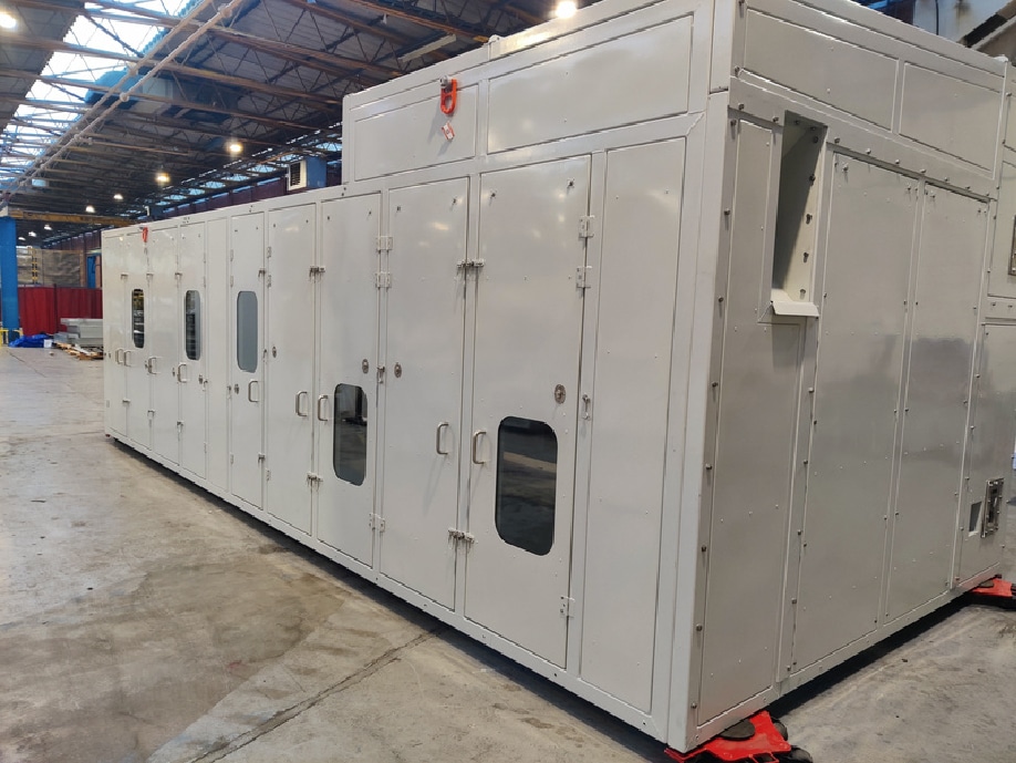 The enclosure measured approx. 4m long x 1.7m wide x 2.1m high, and was supplied as a 1-piece drop-over unit, complete with certified lifting lugs.