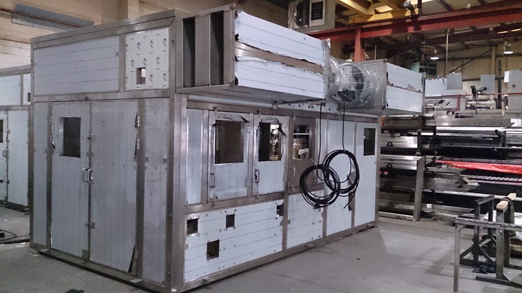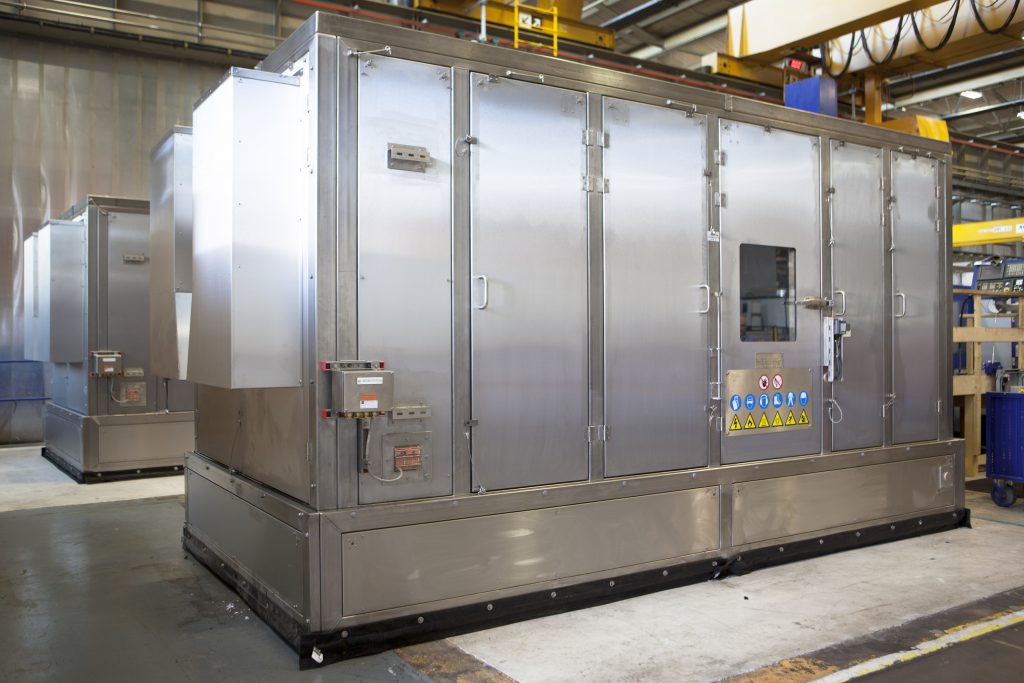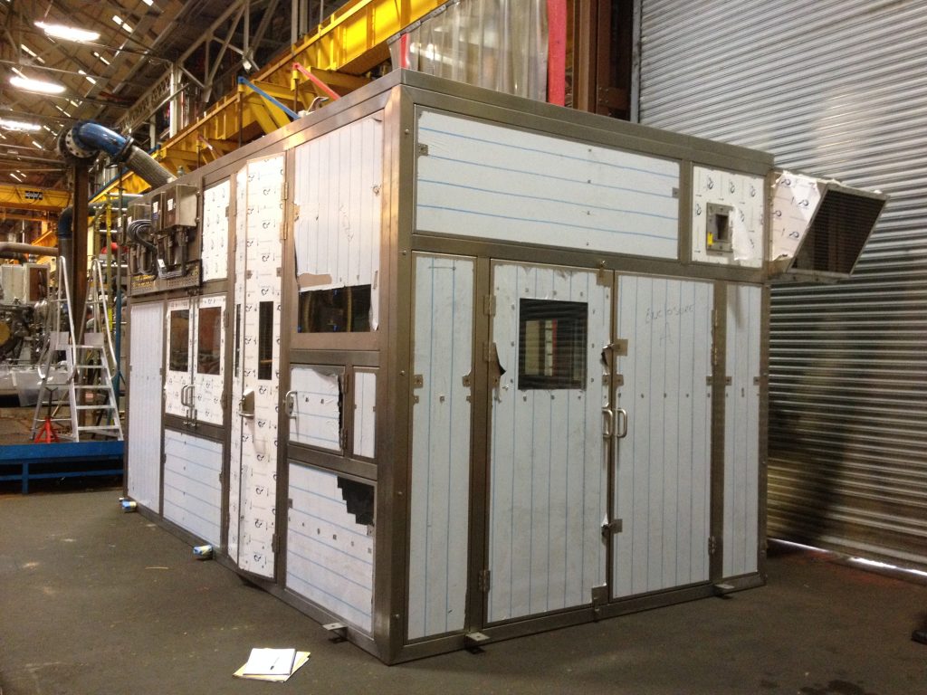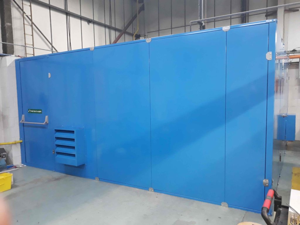 The overall dimensions of the larger enclosure packages were approximately 9.0m x 4.1m x 4.3 m. Given the scale of the enclosures on site the product design required that the product was manufactured in a sectional modular form for transportation . Final commissioning and installation were undertaken by our on site team prior to factory acceptance testing.