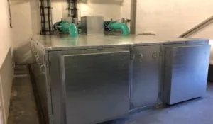 2 off acoustic enclosures manufactured from 316L stainless steel complete with an ATEX rated warm air extraction system and acoustic louvres and acoustic attenuators.