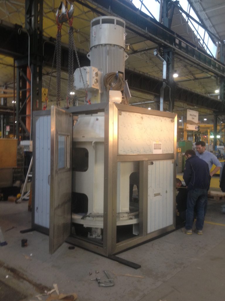 Due to spatial limitations on site these close fitting enclosures were designed with a large number of removable/hinged access panels and polycarbonate viewing windows.